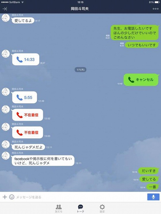 さらに、岡田斗司夫氏と思しき中年男性が美人とキスしているプリクラ写真や、「愛してる」とか「だいすき」とか赤裸々なやりとりが記されたLINEのキャプチャ画像など、恥ずかしい証拠が次々とネットに晒されてしまったのである。